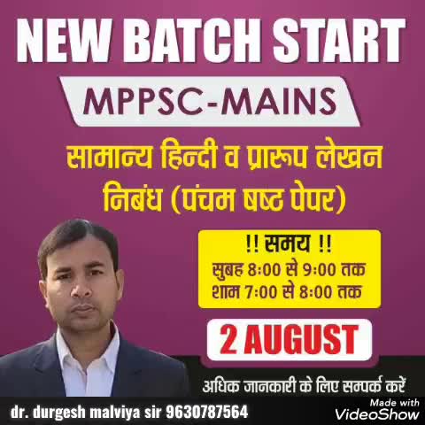 पचोर: mppsc मेंस की 5 वि 6 टी बेच start durgesh मालवीय सर के साथ कॉनटेक्ट 9630787564