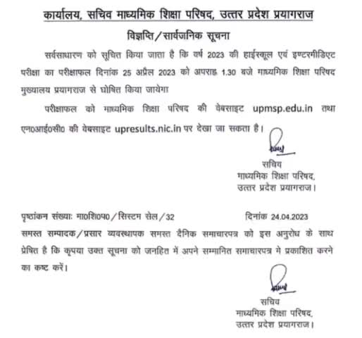 आज दोपहर 1:30 बजे जारी होगा #यूपी_बोर्ड_प्रयागराज_हाईस्कूल_इण्टरमीडिएट का #परीक्षाफल_2023