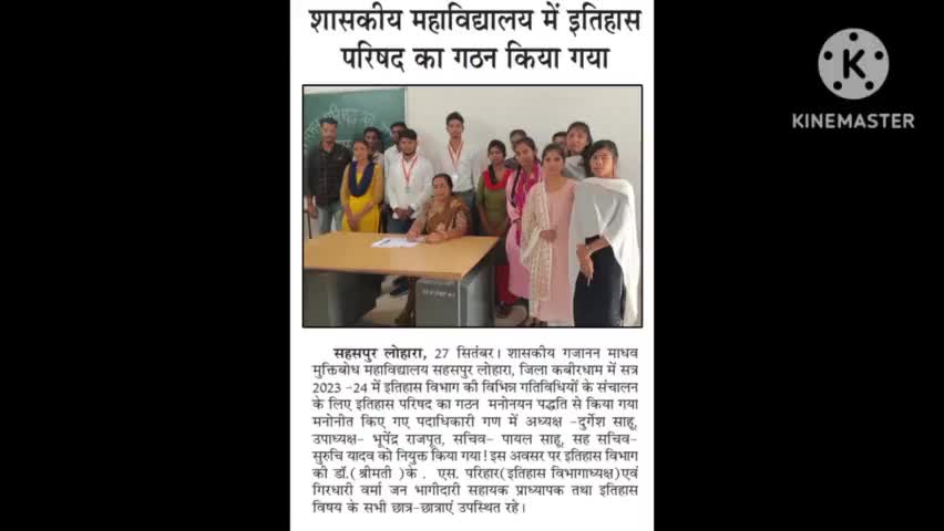 शासकीय महाविद्यालय में इतिहास परिषद का गठन किया गया। शासकीय गजानन माधव मुक्तिबोध महाविद्यालय सहसपुर लोहारा में