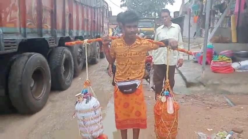 କଣ୍ଟାବାଞ୍ଜି: ରାଣିପୁର ଝରିଆଲ ରୁ ୪୫ଲିଟର ପାଣି ଉଠାଇ ହାତୀବନ୍ଧା ସ୍ୟାବ ପୀଠରେ ଜଳାଭିଷେକ କରିବାପାଇଁ ନେଉଛନ୍ତି କାଉଡିଆ ଭକ୍ତ l