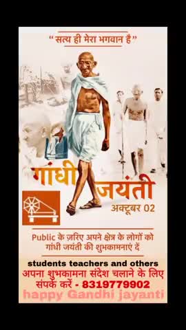 गांधी जयंती पर अपना शुभकामनाएं संदेश चलाने के लिए संपर्क करें -8319779902 mr_aviraj ( public ) happy Gandhi jayanti