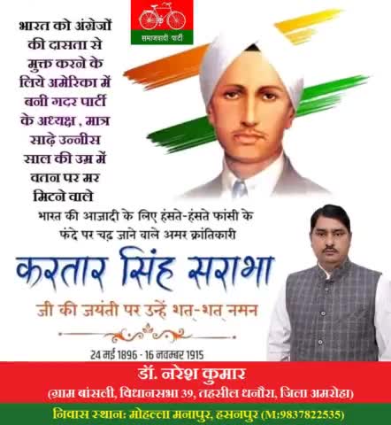 मात्र 19 साल की उम्र में देश के लिए हंसते-हंसते फांसी पर चढ़ गए थे करतार सिंह सराभा जी