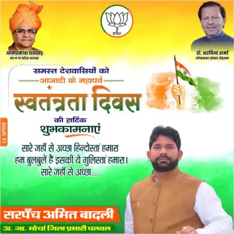 आप सभी को #75thindependenceday की हार्दिक बधाई एवं शुभकामनाएं। #HarGharTiranga 🇮🇳 #JaiHind 🇮🇳 #15thAugust2022 🇮🇳 #75thindependenceday 🇮🇳