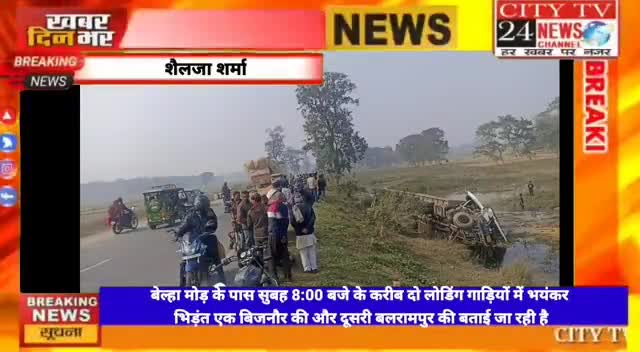 बलरामपुर: बेल्हा मोड़ के पास सुबह 8:00 बजे के करीब अनियंत्रित दो लोडिंग गाड़ियों में भयंकर भिड़ंत एक बिजनौर की और दूसरी बलरामपुर क