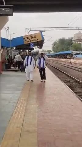 मुरैना मध्यप्रदेश के रेलवे स्टेशन पर घूमते व नारे लगाते हुए रेवन्त राम पंवार पूर्व सरपंच सूरेवाला आसपा जिला प्रभारी हनु