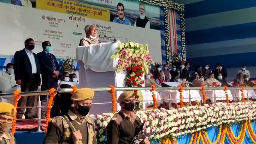 श्री कृष्ण सेतु मुंगेर कार्यक्रम उद्घाटन में संबोधन करते हुए माननीय मुख्यमंत्री श्री नीतीश कुमार जी