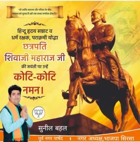 हिंदू हृदय सम्राट व धर्म रक्षक, पराक्रमी योद्धा छत्रपति शिवाजी महाराज जी की जयंती पर उन्हें कोटि-कोटि नमन I