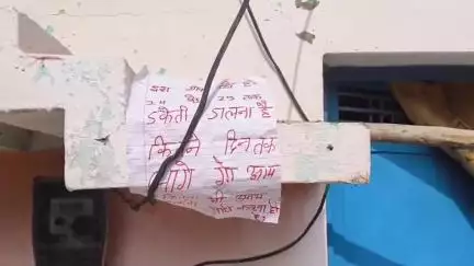 रामगांव थाना क्षेत्र के पांडेय टेपरा गांव निवासी महेश व हरदी थाना क्षेत्र के पाठक पुरवा गांव निवासी सत्यनारायण के घर के बाहर किसी अज्ञात व्यक्ति के द्वारा नोटिश चस्पा कर डकैती डालने की चेतावनी दी है। जिससे आसपास के रहने वाले नागरिकों में दहशत कायम हो गया है।थानाध्यक्ष रामगांव मदन लाल तथा थानाध्यक्ष हरदी आलोक सिंह ने बताया कि इसकी जांच कर कार्यवाही की जाएगी।