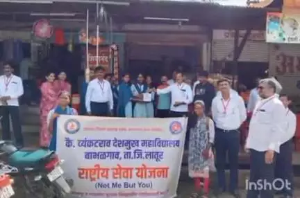 सोलापूर आणि मराठवाडा विभागात झालेल्या अतिवृष्टी पूरपरिस्थितीच्या पार्श्वभूमीवर, स्वामी रामानंद तीर्थ मराठवाडा विद्यापीठ, नांदेड, आणि दयानंद शिक्षण प्रसारक मंडळ, बाभळगाव यांच्या वतीने कै. व्यंकटराव देशमुख महाविद्यालय, बाभळगाव येथे राष्ट्रीय सेवा योजनेच्या स्वयंसेवकांच्या माध्यमातून पूरग्रस्तांसाठी मदत संकलन फेरी यशस्वीरित्या संपन्न झाली.