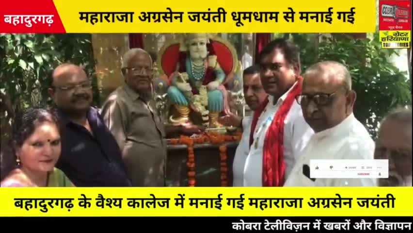 हरियाणा के बहादुरगढ़ में वैश्य कालेज में मनाई गई महाराजा अग्रसेन जयंती । कोबरा टेलीविज़न की विशेष रिपोर्ट।