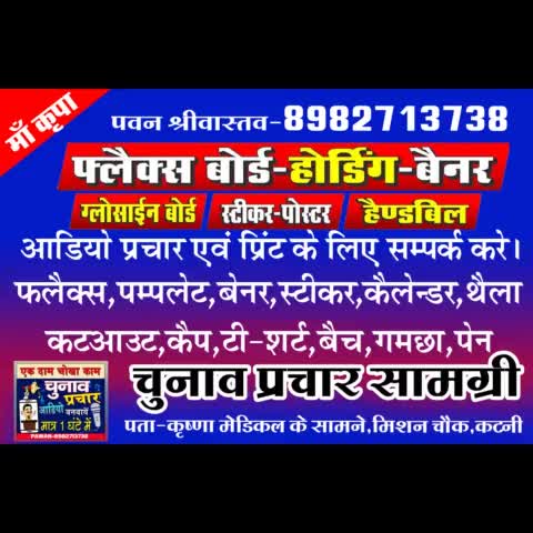 कटनी नगर: चुनाव प्रचार से संबंधित कार्य के लिए संपर्क करें call 8982713738 #mpchunav #katnichunav #panchayatchunaav