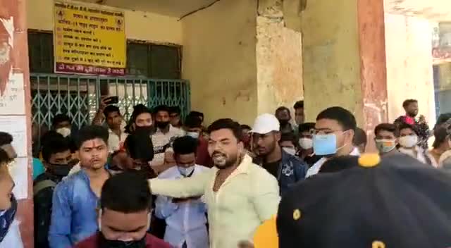 Off line exam के विरोध महाविद्यालय के घेराव के पुर्व छात्र सभा को सम्बोधित करते हुए l