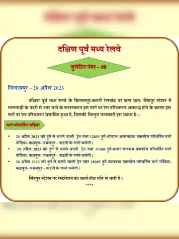 द.पू.म.रे.के बिलासपुर-कटनी रेल परिचालन अवरूद्ध होने के कारण इस मार्ग पर रेल परिचालन प्रभावित हुआ ,जिसकी विस्तृत जानकारी
