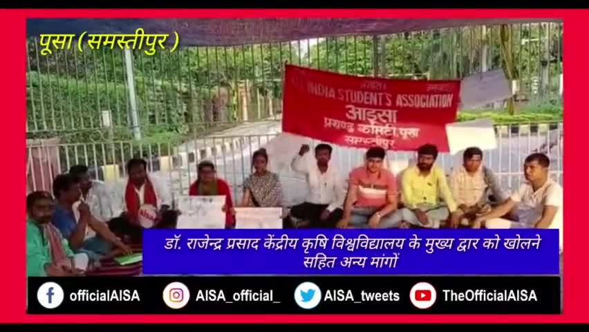 डॉ.राजेन्द्र प्रसाद केंद्रीय कृषि विश्वविद्यालय के मुख्य द्वार को खोलने की मांग पर आइसा का अनिश्चितकालीन भूख हड़ताल शुरू