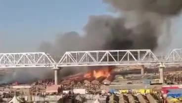 महाकुंभ मेला क्षेत्र में लगी भीषण आग आसमान में दिखा धुएं का गुबार यह आग इतनी भीषण है कि दूर से ही आग का गुबार दिखाई दी