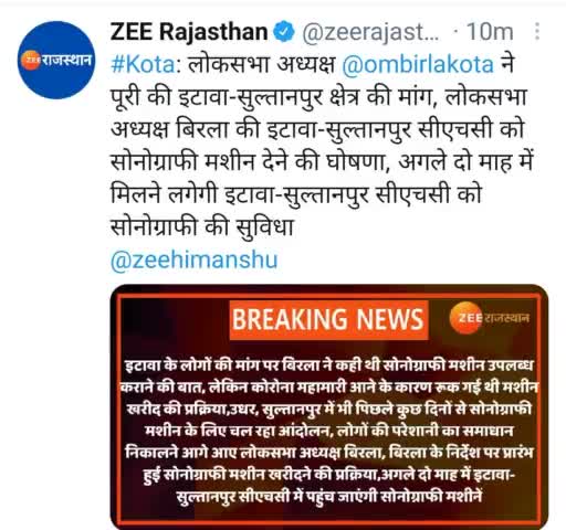 सुल्तानपुर(कोटा) सुल्तानपुर क्षेत्र वासियों के लिए बड़ी राहत ख़बर सोनाग्राफी मशीन देने की घोषणा