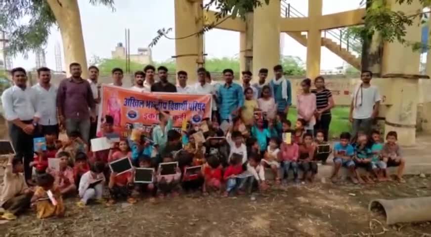 केकड़ी: एबीवीपी द्वारा 74वें स्थापना दिवस पर रविवार को कच्ची बस्ती में रहने वाले बच्चों को शिक्षण सामग्री की गई वितरित
