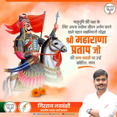 मातृभूमि के लिए अपना सर्वस्व न्योछावर करने वाले महान स्वाभिमानी योद्धा महाराणा प्रताप जी की जन्मजयंती पर नमन