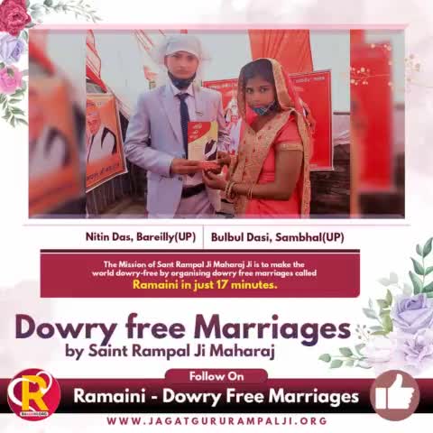 चन्दौसी:- सन्त रामपाल जी महाराज द्वारा बिना बैंड बाजा, बारात यानी बिना आडम्बर के, 17 मिनट में सम्पन्न हुई दहेज रहित शादी