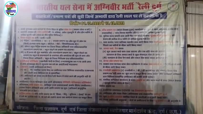 दुर्ग: दुर्ग : दुर्ग में अग्निवीर भर्ती में शामिल होंगे 70 हजार युवा जान लीजिए ये दस्तावेज ले कर आना है वर्ना हो जाओगे बाहर