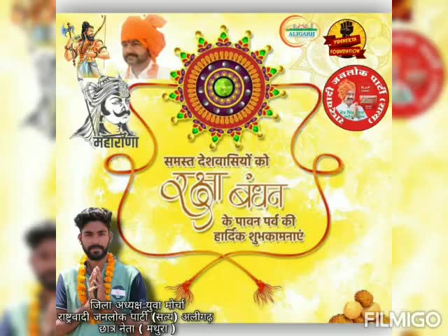 जिला अध्यक्ष युवा रोहित जादौन एवं एडवोकेट हेमलता वर्मा की और से छेत्र की जनता ,देशवासियों को रक्षा बंधन की हार्दिक शुभ।