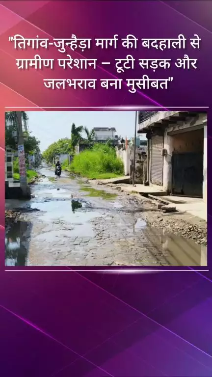 "तिगांव-जुन्हैड़ा मार्ग की बदहाली से ग्रामीण परेशान – टूटी सड़क और जलभराव बना मुसीबत"...........................
