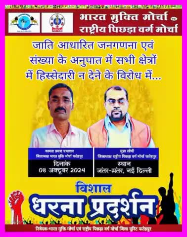 Munna Lodhi Fatehpuri, 8 अक्टूबर दिल्ली चलो जंतर मंतर मैदान में। पिछड़ों दलितों शोषितों के सम्मान में।।