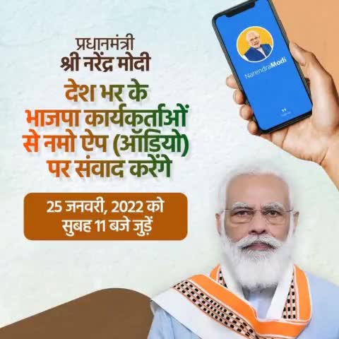 प्रधानमंत्री श्री Narendra Modi जी 25,1,2022 को देश भर के भाजपा कार्यकर्ताओं से नमो ऐप पर संवाद करेंगे।