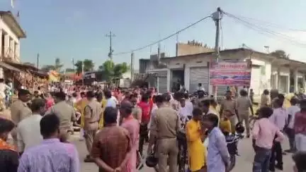 डुमरियागंज तहसील क्षेत्र के बयारा में बुधवार को मां दुर्गा प्रतिमा विसर्जन के लिए निकली जिसमें काफी संख्या में पुरुष महिलाएं बच्चे शामिल हुए। विसर्जन संपूर्ण ढंग से संपन्न करने के लिए सीओ डुमरियागंज नायब तहसीलदार डुमरियागंज थानाध्यक्ष भवानीगंज मय फोर्स मौजूद रहे।