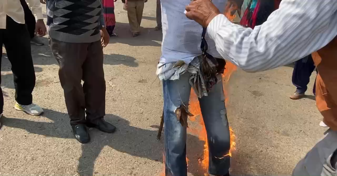 मांगों के समर्थन में 21 मार्च को C. S.I का पुतला दहन करते हुए, HSVP नगर निगम कर्मचारी - पंचकूला