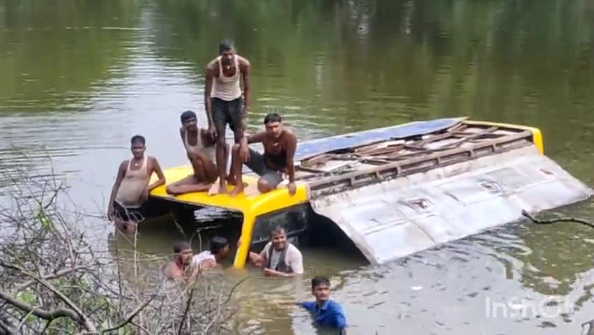 बलिया: पोखरिया में गड्ढे में पलटी स्कूली बस, स्थानीय लोगों ने बच्चों की बचाई जान