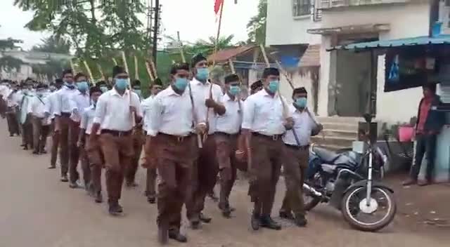 नवापारा राजिम में निकली संघ की संचलन रायपुर ग्रामीण जिला के प्राथमिक वर्ग शिविर