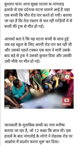 Nangloi Mai ek bacchi ki maut road paar karte hue ho gai.