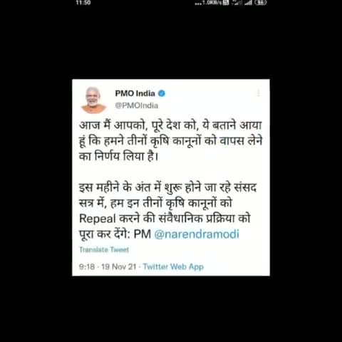 दिल्ली: केन्द्र सरकार ने तीनों कृषि कानून वापस लेने का ऐलान कर दिया है। @anjum.alam09 @mo8521768357 @sentu118