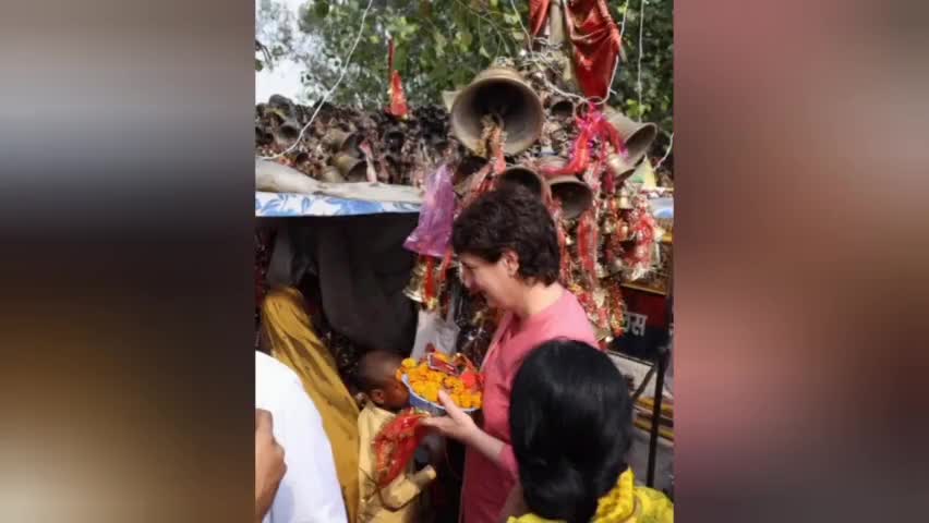नवरात्र के पहले दिन मंदिर पहुंचीं प्रियंका