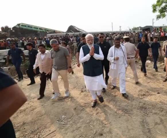 दुःख के घड़ी मे ओडिशा के बालासोर में रेल दुर्घटना स्थल पर पहुंचे प्रधानमंत्री श्री Narendra Modi जी.....