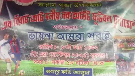 আদিবাসীদের করমপূজো উপলক্ষ্যে হাঁসখালীর ভায়নায় ৮ দলীয় ফুটবল টুর্নামেন্ট, বুধবার ছিলো আদিবাসীদের করমপূজো বা ডাল পূজো, সমস্ত আদিবাসীদের মধ্যে দেখা গেল এদিন সন্ধ্যায় গানের তালে তালে নাচ গান করতে, সেই মতো হাঁসখালীর হাতিবান্ধা গ্রামেও সেই পরিবেশ ফুটে উঠলো, শুধুমাত্র নাচ গানই নয় কোথাও বা দেখা গেলো খেলার পরিবেশ তৈরী হয়েছে, হাঁসখালীর ভায়নাতে আমরা সবাই ক্লাবের উদ্যোগে ৮ দলীয় নকআউট ফুটবল টুর্নামেন্টের আয়োজন করা হয়, তবে প্রত্যেক বছরের থেকে এবছর কিছুটা পরিবর্