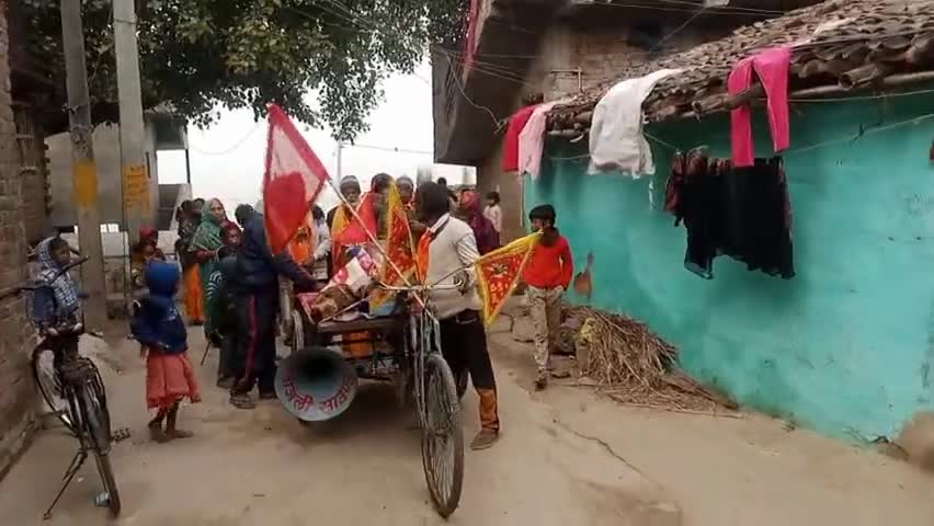धरहरा: अयोध्या में रामलला की प्राण प्रतिष्ठा को लेकर हेमजापुर में कार्यकर्ताओं ने किया अक्षत का वितरण।