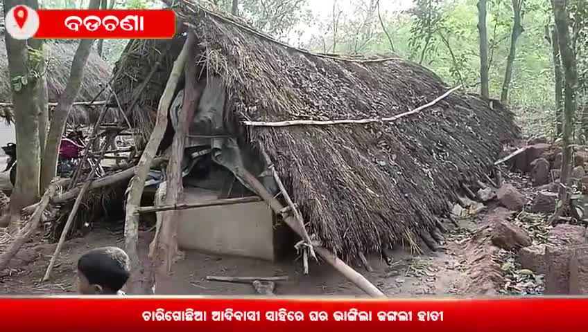 ବଡଚଣା: ଚାରିଗୋଛିଆ ଆଦିବାସୀ ସାହିରେ ଦୁଇ ଗୋଟି ଘର ଭାଙ୍ଗିଲେ ଜଙ୍ଗଲୀ ହାତୀ