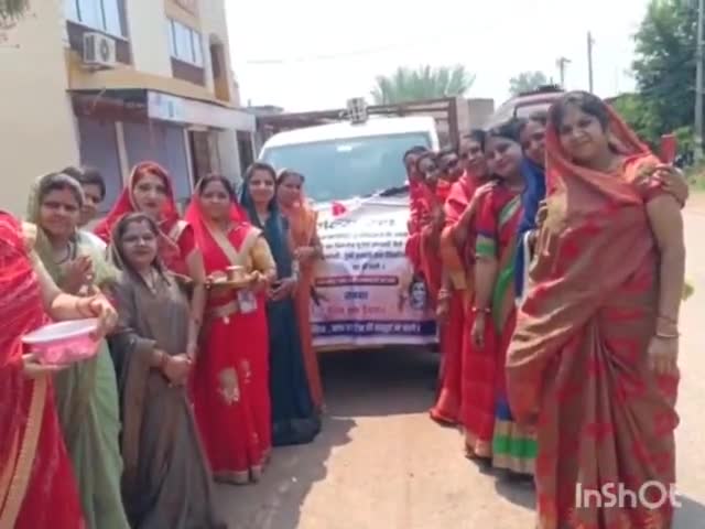नगर देवकर में पंडित प्रदीप मिश्रा के भक्तों के द्वारा डोर टू डोर फूल कलेक्शन के लिए निकाला गया रथ