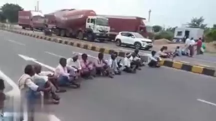 నల్లగొండ జిల్లా తిప్పర్తి పోలీస్ స్టేషన్ సమీపంలోని నార్కట్పల్లి అద్దంకి హైవేపై యూరియా లభ్యత కోసం రైతులో ధర్నాకు దిగారు. ఈ సందర్భంగా బుధవారం పెద్ద ఎత్తున యూరియా కోసం ధర్నా చేపట్టడంతో భారీగా ట్రాఫిక్ జామ్ ఏర్పడింది. అవసరమైన యూరియా అందక రైతాంగం తీవ్రంగా నష్టపోతుందని పలువురు రైతులు నినాదాలు చేపట్టారు. రైతాంగానికి సకాల సమయానికి యూరియా అందించాలన్నారు. అధికారులు రైతులతో చర్చలు జరిపి పరిస్థితిని నియంత్రించేందుకు ప్రయత్నించారు. పోలీసులు సంఘటన స్థలానికి చేరుకొని రైతులకు సర్ది చెప్పారు.