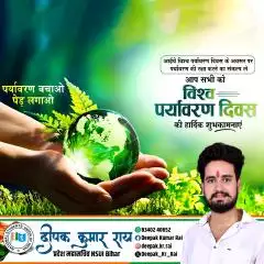 आप सभी को "विश्व पर्यावरण दिवस" की हार्दिक बधाई एवं शुभकामनाएं। विश्व पर्यावरण दिवस के अवसर पर हम सभी यह प्रण लें कि "आओ मिलकर पेड़ लगाएं और पर्यावरण को स्वच्छ बनाएं।"