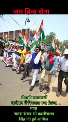 सेना के सम्मान में लातेहार में निकाला गया तिरंगा यात्रा चतरा संसद श्री कालीचरण सिंह जी हुवे e