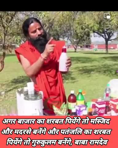 अगर बाजार का शरबत पियेंगे तो मस्जिद और मदरसे बनेंगे और पतंजलि का शरबत पियेंगे तो गुरुकुलम बनेंगे, बाबा रामदेव