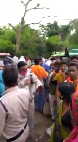 गिरवाई थाने के पास स्थित सब्जी मंडी में सोशल डिस्टेंसिंग का पालन ना करने पर पुलिस द्वारा सख्ती बरती जाने के विरोध में