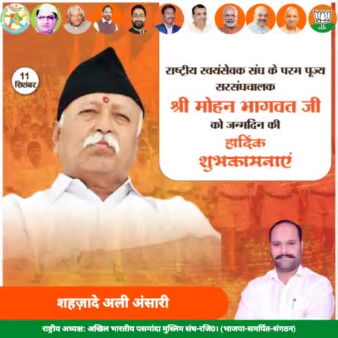 राष्ट्रीय स्वयंसेवक संघ के परम पूज्य सरसंघचालक श्री मोहन भागवत जी को जन्मदिन की हार्दिक शुभकामनाएं ईश्वर से आपके उत्तम स्वास्थ्य और दीर्घायु की प्रार्थना है।