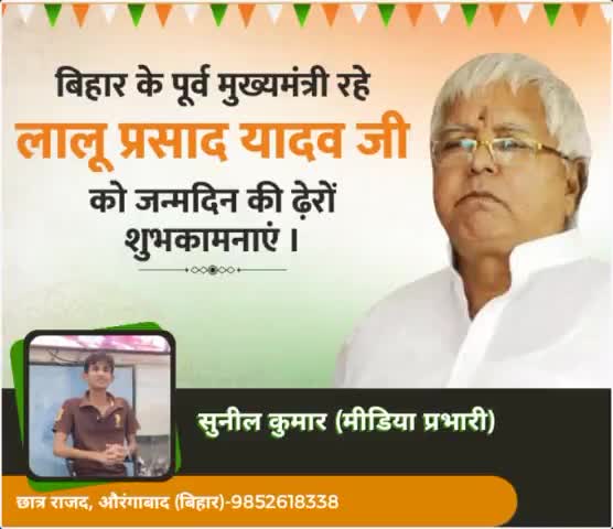 जन जन की आवाज लालू प्रसाद यादव जी की जन्म दिन की हार्दिक शुभकामनाएं