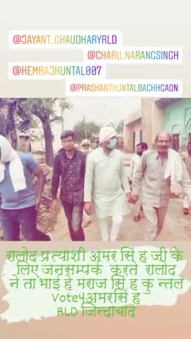 रालोद प्रत्याशी अमर सिंह के लिए वार्ड नं 19 में जनसम्पर्क करते रालोद हेमराज सिंह कुन्तल व प्रशान्त कुन्तल