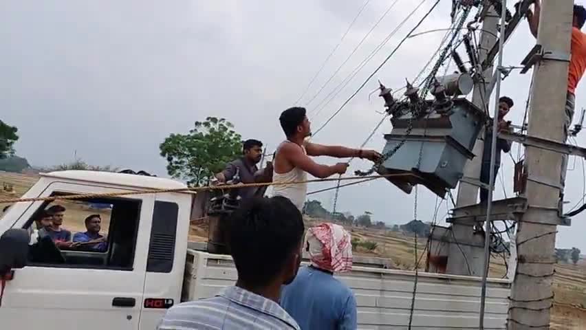 सरना टोली में 25 केवीए का ट्रांसफॉर्मर लगवाते हुए