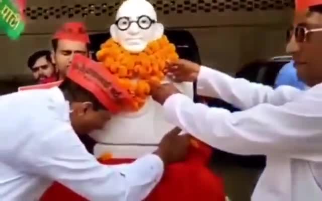 उरई: महात्मा गांधी जी की प्रतिमा से चिपक के रोये समाजवादी पार्टी के नेता देखे वीडियो